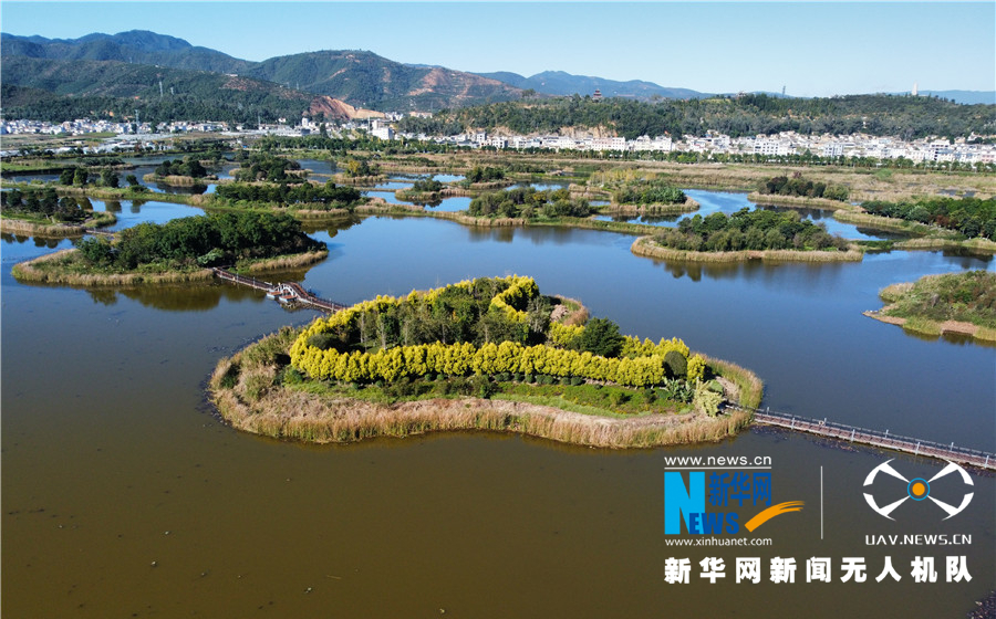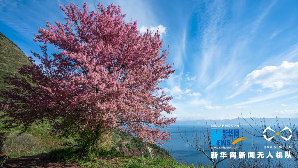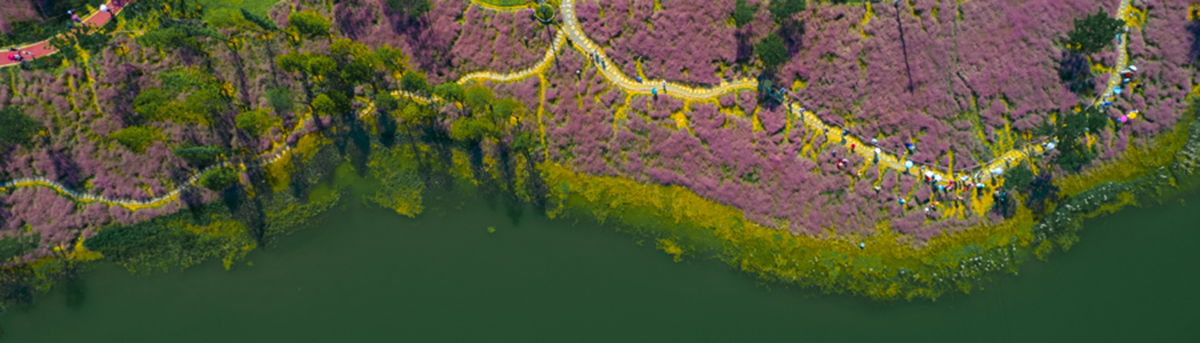 紅花依碧水,仙湖早爭春。在北方正冰天雪地的時(shí)候,云南澄江撫仙湖畔卻紅翠相染,山花爛漫,依舊溫暖如春。冬櫻花與綠樹、藍(lán)天、碧水,共同構(gòu)成一幅色彩斑斕的山水畫卷。