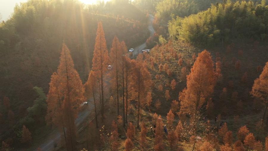 冬日時(shí)節(jié),位于懷化市鶴城區(qū)的水杉林悄悄地?fù)Q上了“冬裝”,一排排緋紅的水杉在冬日里綻放,層林盡染,美輪美奐,吸引眾多游客前往觀景。