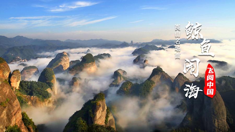 冬季清晨,崀山霧氣升騰。浮云縹緲之中,丹霞群山逶迤起伏,大小百余座赫紅色奇峰,酷似一群在云海中飛騰嬉戲的巨鯨,時(shí)而被云霧吞沒,時(shí)而露出首尾。